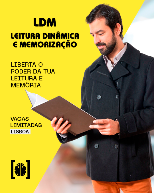 O LDM (Leitura Dinâmica e Memorização) é uma formação intensiva que ensina técnicas práticas para aumentares a velocidade da tua leitura e melhorares a tua capacidade de compreensão e retenção de conteúdos. Ideal para quem quer aprender mais em menos tempo — seja para os estudos, para o trabalho, ou simplesmente para voltar a apaixonar-se pelos livros.